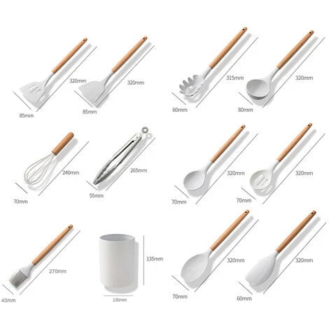 11 ensembles d’ustensiles de cuisine: 11 ensembles d’ustensiles de cuisine en silicone professionnels, y compris la cuillère à soupe profonde, une cuillère à soupe profonde, une cuillère solide, une cuillère à fentes, une spatule solide, une spatule flexible, une spatule fendue, un fouet à œufs, etc. pour répondre à vos divers besoins de la cuisine.