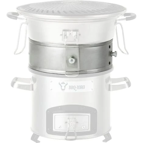 L’anneau de puissance est un accessoire utile pour le four-fusée BBQ-Toro. Vous pouvez modifier le diamètre de cette bague en acier inoxydable à votre guise en utilisant une vis sur le côté.