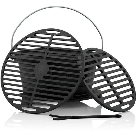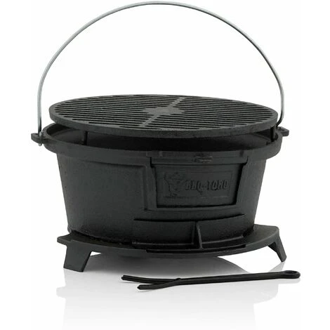 Avec le grill BBQ-Toro, vous êtes parfaitement équipé pour un barbecue. Le gril, en fonte, est déjà brûlé et peut être utilisé directement. Mettez du charbon de bois ou du bois dans la marmite du barbecue et allumez-la. Ensuite, mettez la grille en fonte dessus. Vous pouvez maintenant commencer. Que ce soit à la maison dans le jardin, en camping ou en pique-nique – le pot à barbecue est mobile et peut être emporté partout grâce à sa poignée de transport.