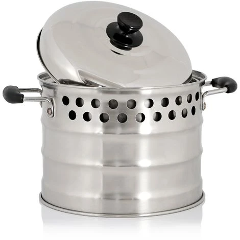 La marmite se compose d’un pot et d’un couvercle assorti et est en acier inoxydable. La particularité de cette marmite est qu’elle est à double paroi et qu’elle s’adapte parfaitement aux fours-fusées BBQ-Toro.