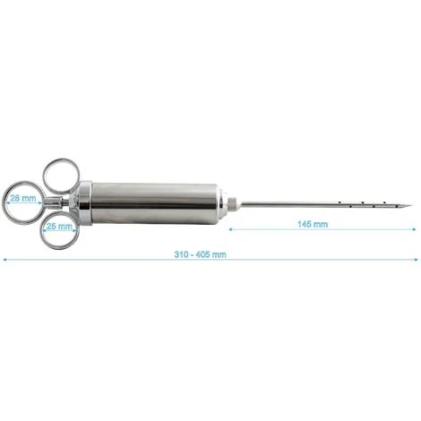 – Dimensions de la seringue à mariner (aiguille comprise): environ 31 – 40,5 cm