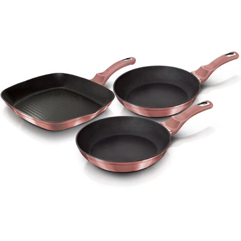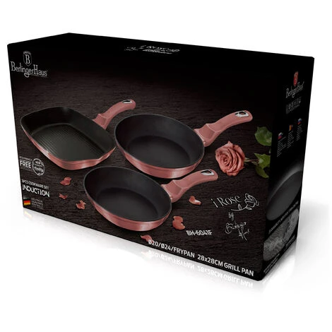 D’excellents repas commencent avec les bons ustensiles de cuisine. Les poêles Berlinger Haus ne vous aident pas seulement à cuire vos aliments, elles permettent également de réduire le temps de cuisson et de préserver la qualité des aliments. L’ensemble comprend 2 poêles à frire et 1 poêle à griller, idéales pour faire sauter, frire et griller la viande et le poisson.