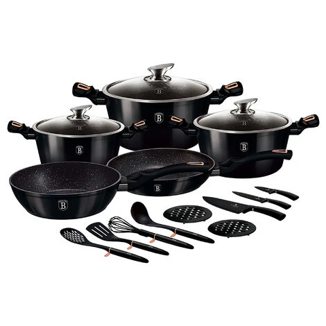 Vivez des moments inoubliables avec votre famille et vos amis en dégustant de délicieux repas préparés avec les ustensiles de cuisine haut de gamme Shyny Black. Il se compose de 3 casseroles avec couvercle et de 2 poêles à frire qui couvriront tous vos besoins lorsqu’il s’agira de préparer des ragoûts, de réchauffer des aliments, de faire des sautés ou de griller de la viande et du poisson. Comprend également 3 couteaux (oignon, éplucheur, multi-usages), 2 sets de table et 4 ustensiles de cuisine.