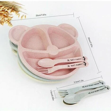 - L’assiette pour enfants est composée de PP + bâtonnet de blé mélangé, qui est naturellement biologiquement respectueux de l’environnement, biodégradable, sans toxines sans BPA.