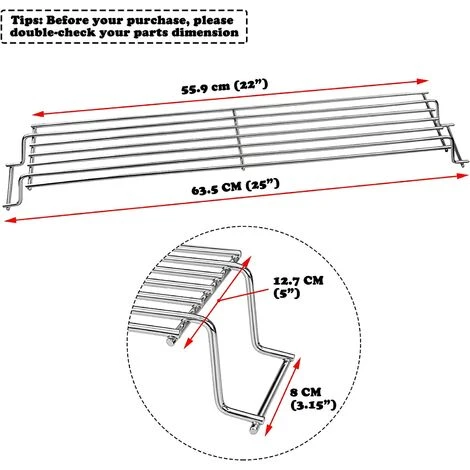 【Dimension】- 63,5 cm (L) x 12,7 cm (W) x 5,8 cm (H) 【Matériau】 : PLAQUÉ CHROMÉ. Grille de réchaud idéale pour votre barbecue Weber (Paquet) 1 x grille de réchaud.