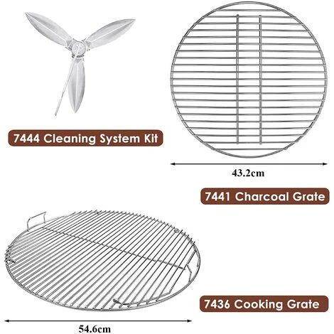 【Ventes en lot】 – Si votre gril appartient au gril à charbon Weber 57 cm: l’achat de ce kit de pièces de rechange (grille de cuisson Weber 7436 + grilles à charbon Weber 7441 + système de nettoyage 7444) est plus rentable que de les acheter séparément, un- arrêtez de magasiner, obtenez ce dont vous avez besoin à un prix décent pour renouveler votre gril.Veuillez comparer avec la taille et le modèle de vos pièces d’origine avant d’acheter.