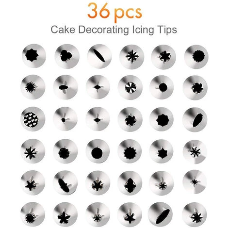 Conseils de glaçage 36Pcs: diverses buses de tuyauterie en acier inoxydable pour créer une texture plus différente sur le cÎté ou le dessus des gùteaux.