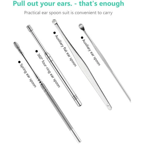 Ensemble de 6 pièces. Y compris cuillère à oreille à ressort, cuillère à oreille à quatre anneaux, cuillère à oreille plate auxiliaire, cuillère à oreille auxiliaire * 2, brosse de nettoyage pour cheveux doux.