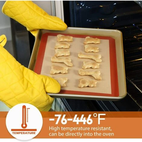 Surface de cuisson saine et antiadhĂ©sive – Nouvelle mise Ă niveau, la conception en silicone et fibre de verre de qualitĂ© supĂ©rieure rĂ©siste Ă la chaleur jusqu’Ă 446 ° F pour faciliter la cuisson de biscuits, de bonbons, de viandes ou mĂȘme de fruits et lĂ©gumes sans compter sur de la farine malsaine , graisses, huiles ou sprays.