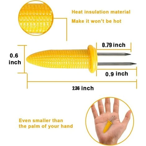 【CONCEPTION PARFAITE】 Le support en épi de maïs est doté de 2 pointes acérées pour faciliter le ramassage du maïs chaud. Le support est conçu avec une poignée ergonomique, confortable à tenir et antidérapante. Les épingles acérées peuvent facilement pénétrer dans les épis de l’épi et fixer le maïs pour une alimentation propre et confortable.