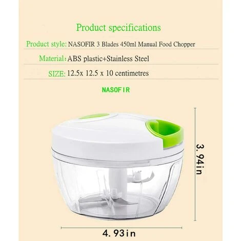 【Matériau sans danger pour les aliments 】: Le récipient du hachoir est fait de plastique ABS sans danger pour les aliments, sans BPA, suffisamment solide. Les lames sont en acier inoxydable tranchant de première qualité. Capacité : 0,4 L Dimensions : 9 x 9×12.5 cm