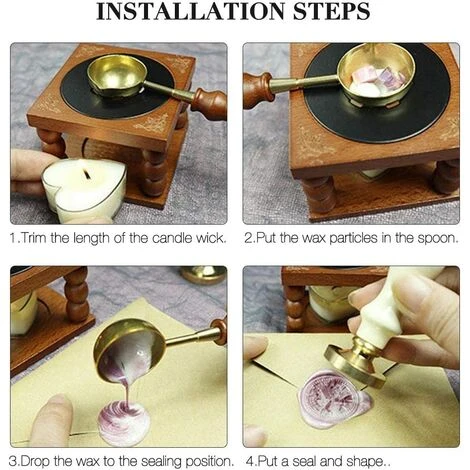 Ce que vous pouvez obtenir – l’ensemble de cire Ă cacheter comprend 1 x chauffe sceau de cire Ă cacheter, 1 x cuillĂšre Ă fondre avec manche en bois et 1 x bougie.