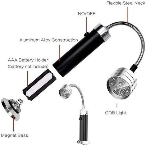 - Col de cygne flexible: le col de cygne flexible de 11 cm peut être pivoté à 360 degrés. Vous pouvez ainsi diriger le faisceau lumineux exactement là où vous en avez besoin et illuminer chaque pouce de la surface de votre gril.