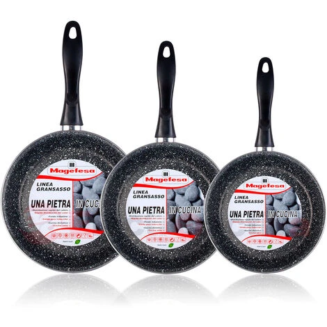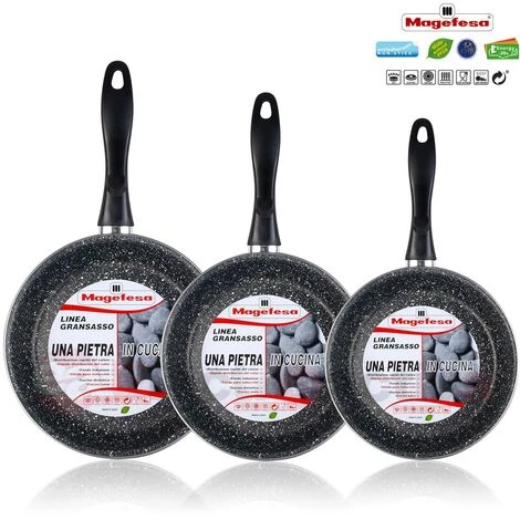 Magefesa K2 Gransasso Lot De 3 Poêles 18-20-24 Cm Induction, Antiadhésives PIERRE Gris – Gris