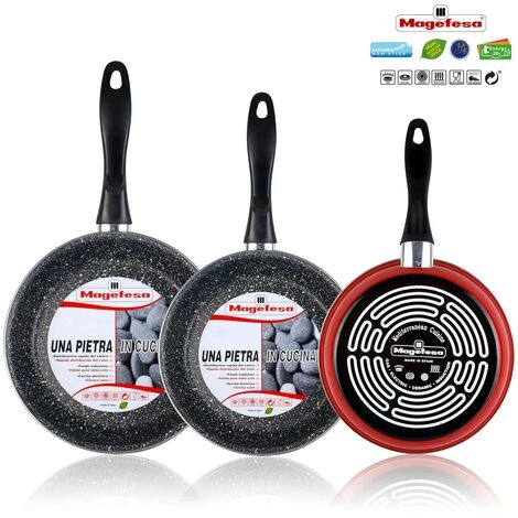 Magefesa K2 Roja Lot De 3 Poêles 20-24-28 Cm Induction, Antiadhésives PIERRE Rouge – Rouge
