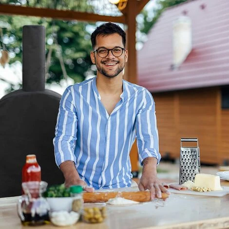 Design astucieux – la forme parfaite pour un four à pizza et cheminée pour assurer une protection complète par tous les temps.
