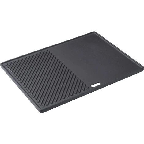 - Le côté plat est idéal pour rôtir et cuire de petites grillades qui, sinon, tomberaient à travers la grille (par ex. fruits de mer ou œufs au plat).