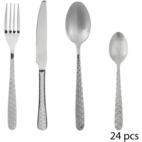 – Ménagère de 24 pièces comprenant six fourchettes, six couteaux, six cuillères à soupe et six cuillères à café.