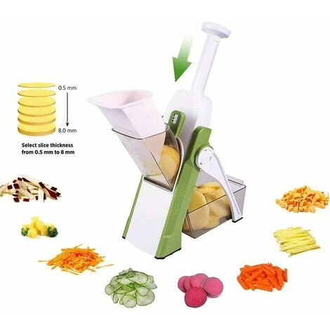 Polyvalent – Il existe plus de 30 options de tranchage pour un tranchage parfait de 1 Ă 9 mm d’Ă©paisseur, tout en offrant des options polyvalentes pour le tranchage, la julienne, les cubes, les frites, les oignons, les carottes, les pommes de terre, les tomates, les fruits