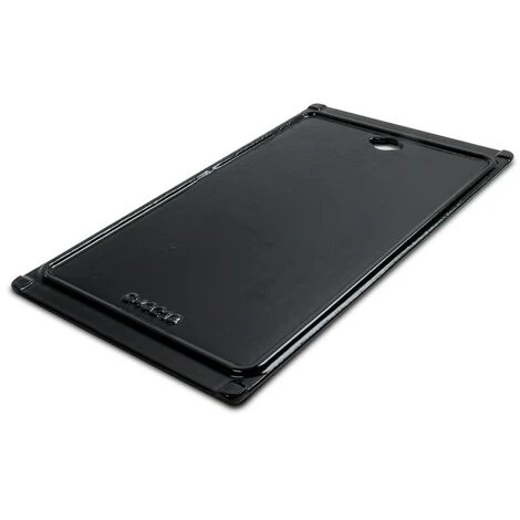 Cette plaque de cuisson est réversible, avec une surface lisse pour cuisson à la plancha et une surface rainurée pour cuisson au grill.