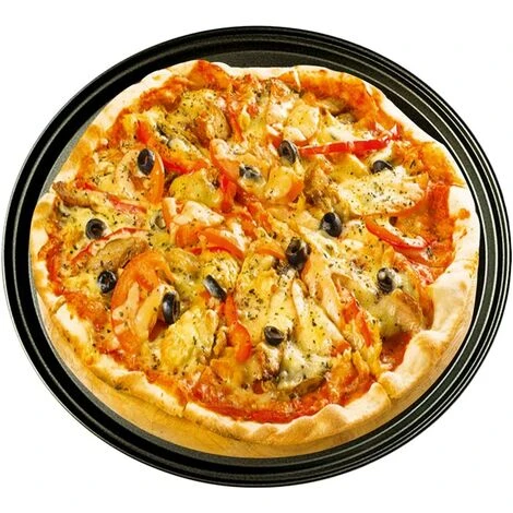 Plateau à pizza rond en acier au carbone de haute qualité, moules de cuisson avec revêtement antiadhésif durable pour des propriétés de cuisson optimales et régulières.
