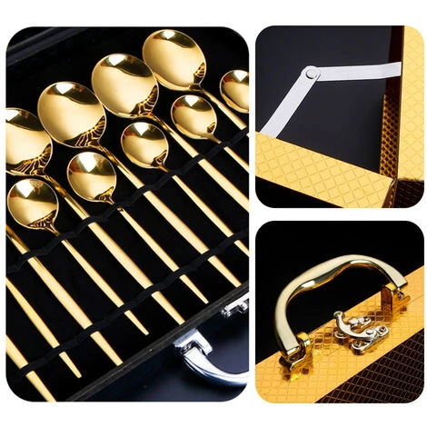 L’ensemble de vaisselle 24 pièces est fabriqué en acier inoxydable de qualité, garantissant une longue durée de service. Et la boîte cadeau de rangement ressemble à une œuvre d’art, idéale pour la décoration de table à la maison.