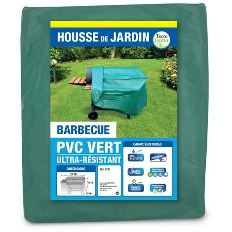 - Housse de protection pour barbecue en PVC de couleur verte.