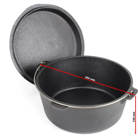 Dutch Oven Marmite 10L Dessous-plat Lève-couvercle Fait-tout Fonte