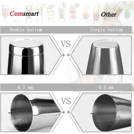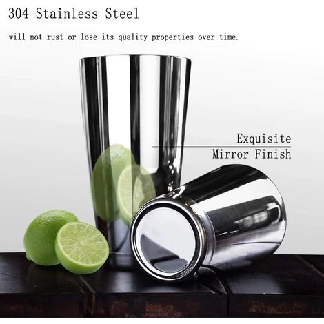 : Fabriqué en acier inoxydable 304 de qualité alimentaire avec une finition miroir, va au lave-vaisselle. Les boîtes à shaker lestées ont une épaisseur spéciale de 0,7 mm pour les rendre à la fois plus durables et plus faciles à agiter votre liqueur. Les deux boîtes s’emboîtent parfaitement et offrent une excellente étanchéité.